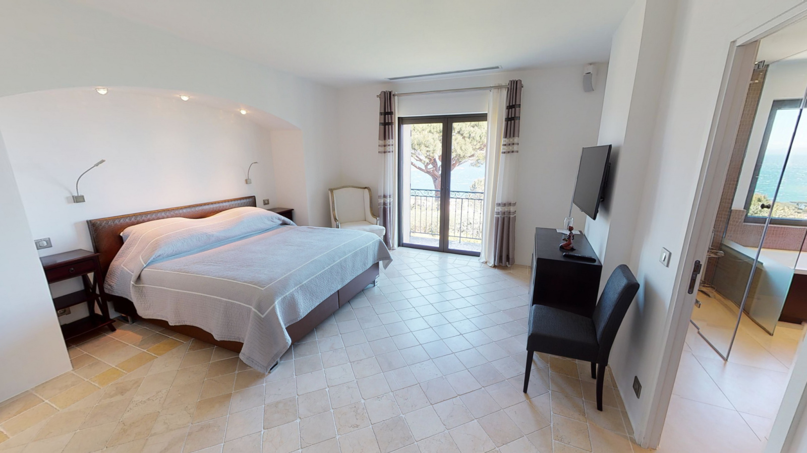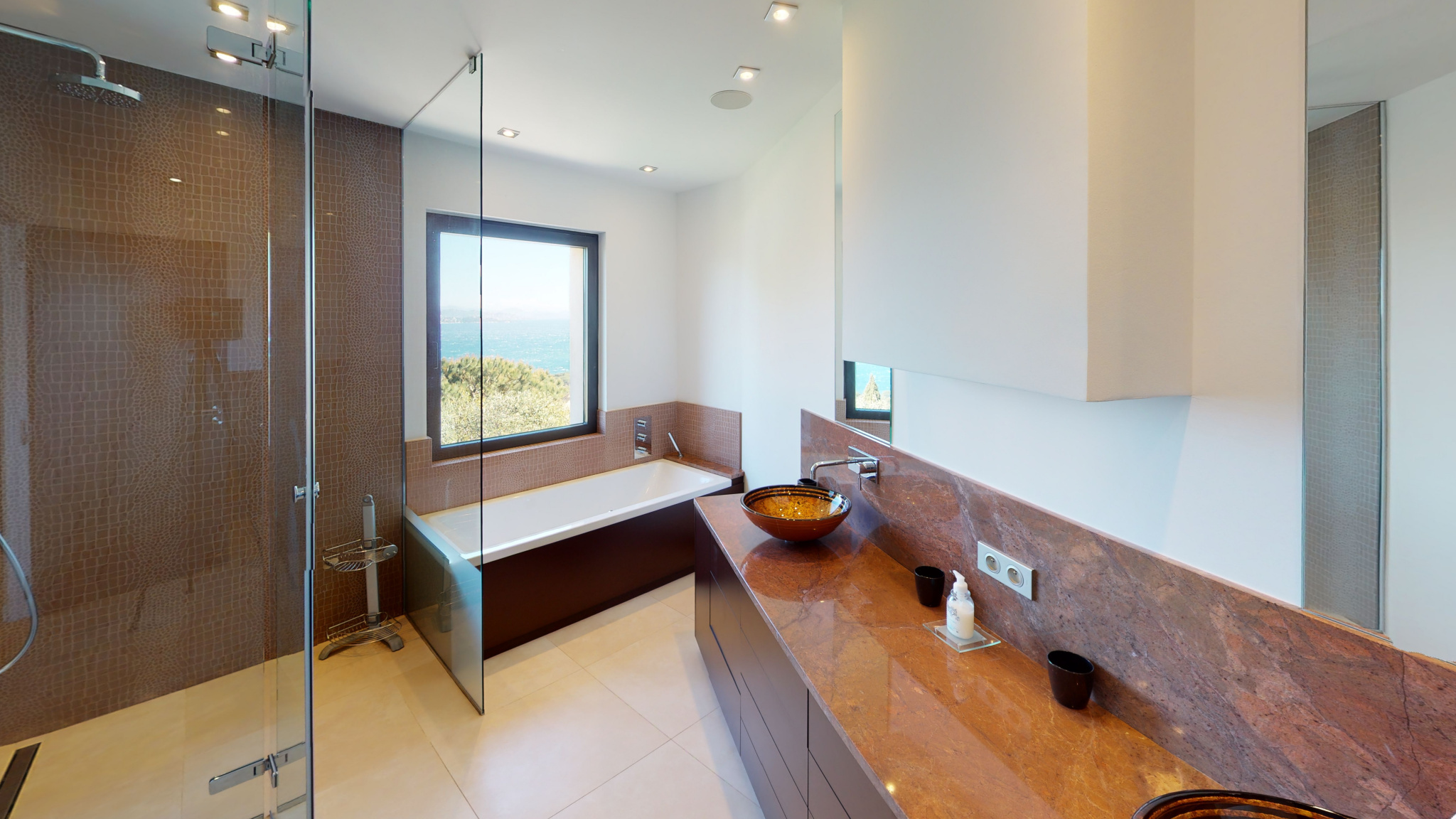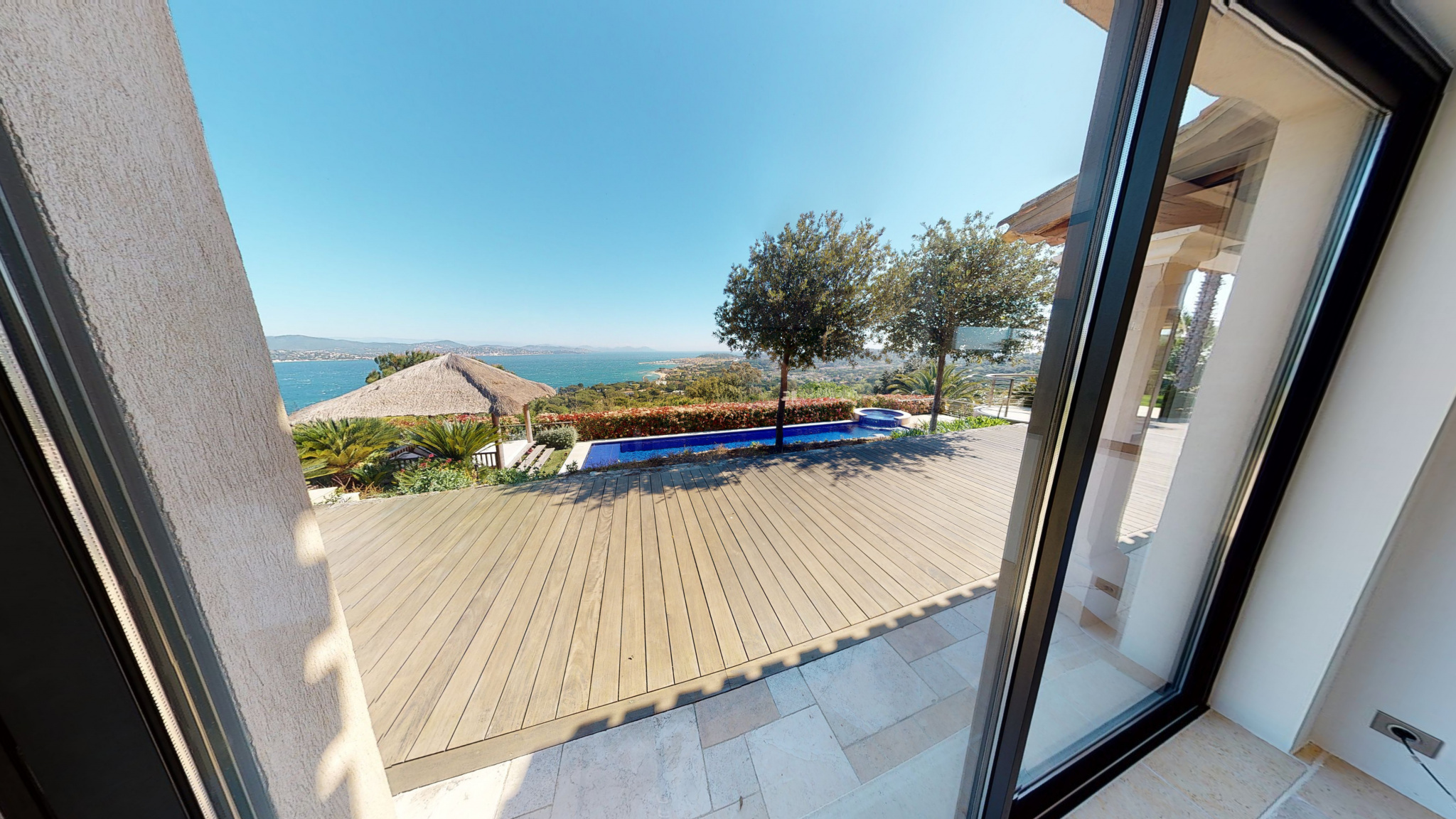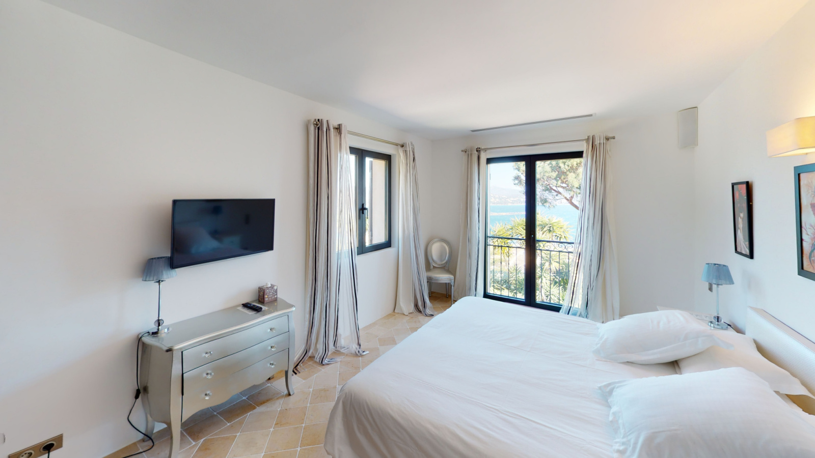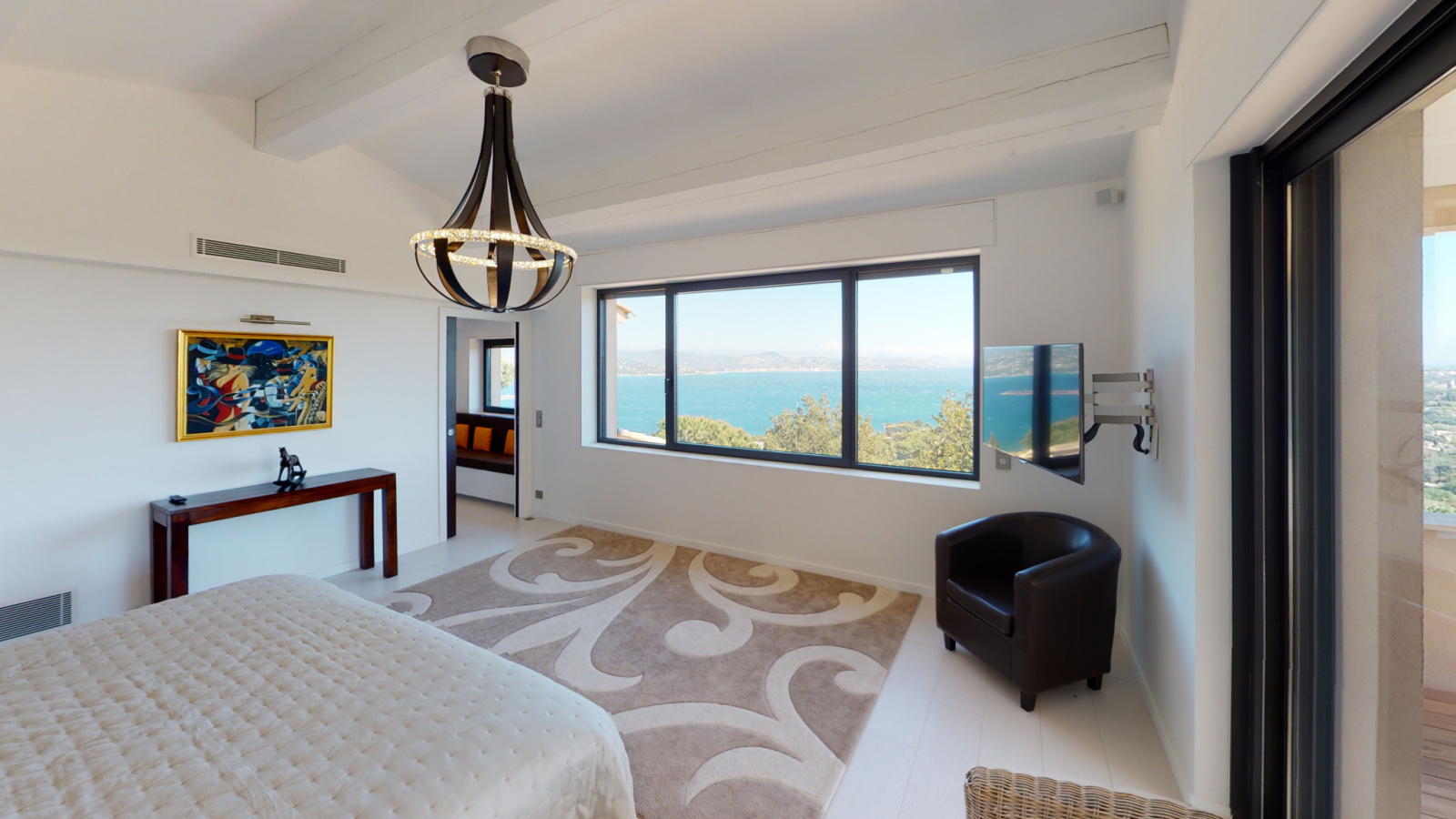 Propriété entièrement climatisée, de 6 chambres et 6 salle de bains/salle d'eau et 6 toilettes avec chacune un dressing et une vue mer.
