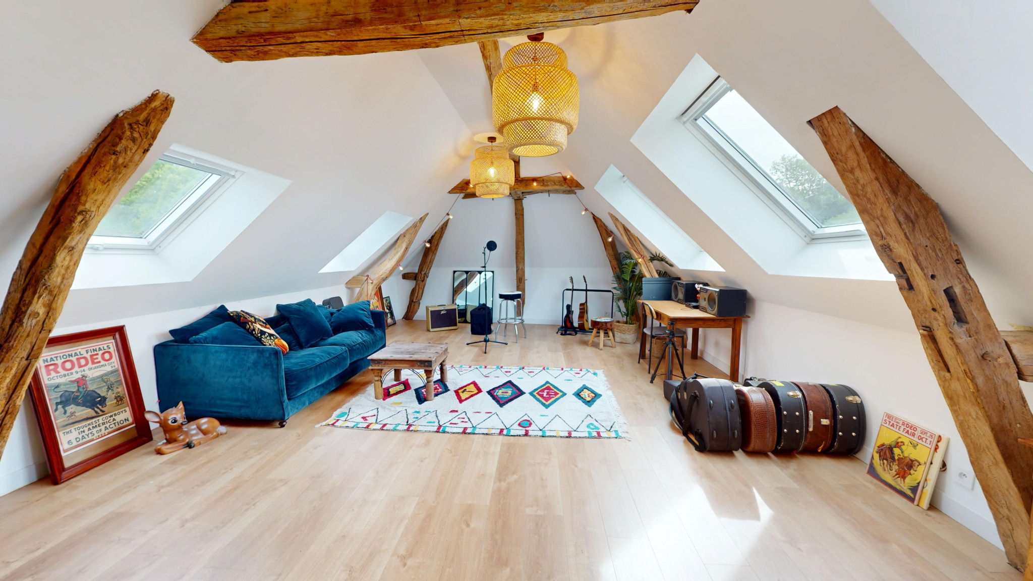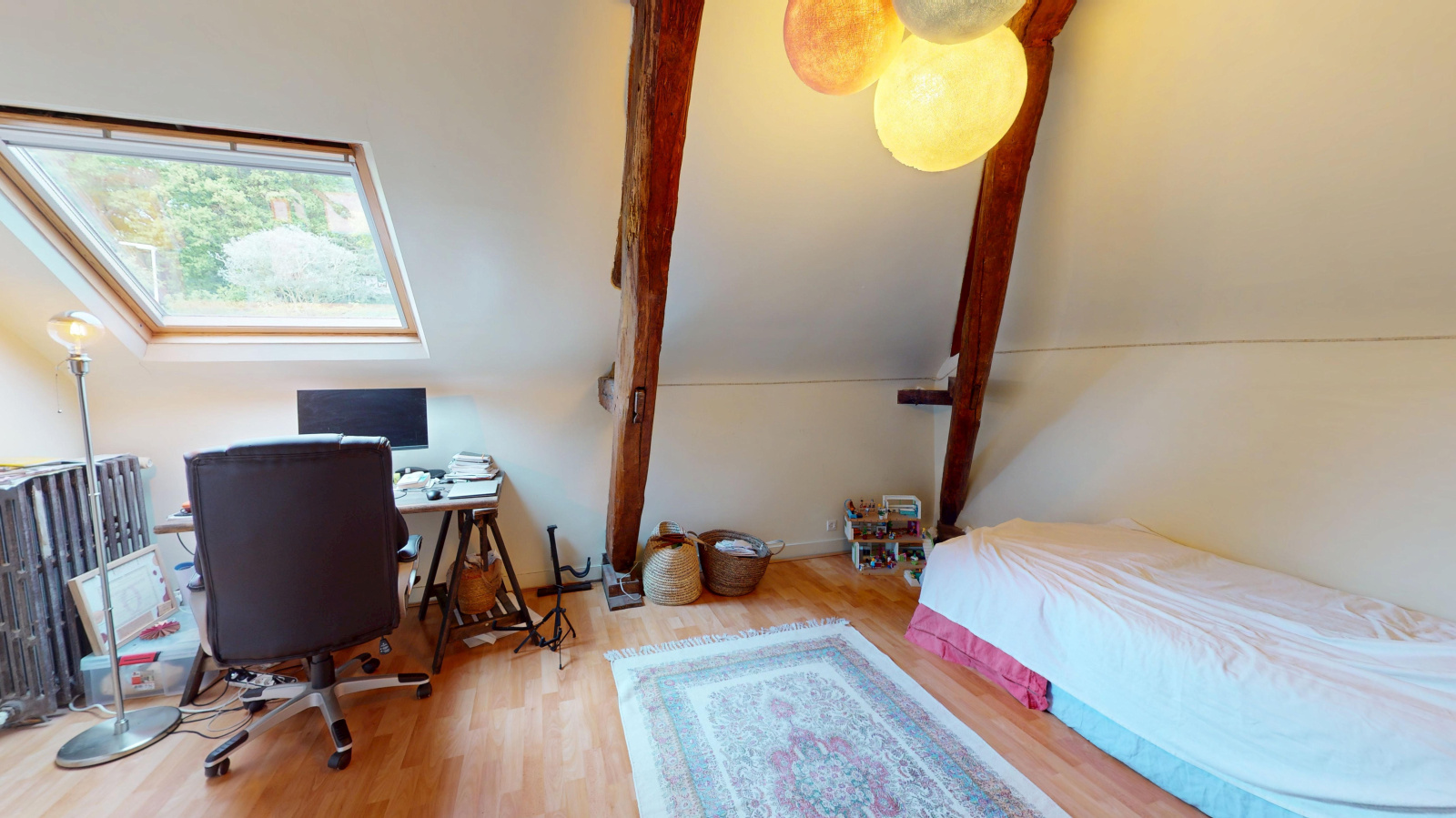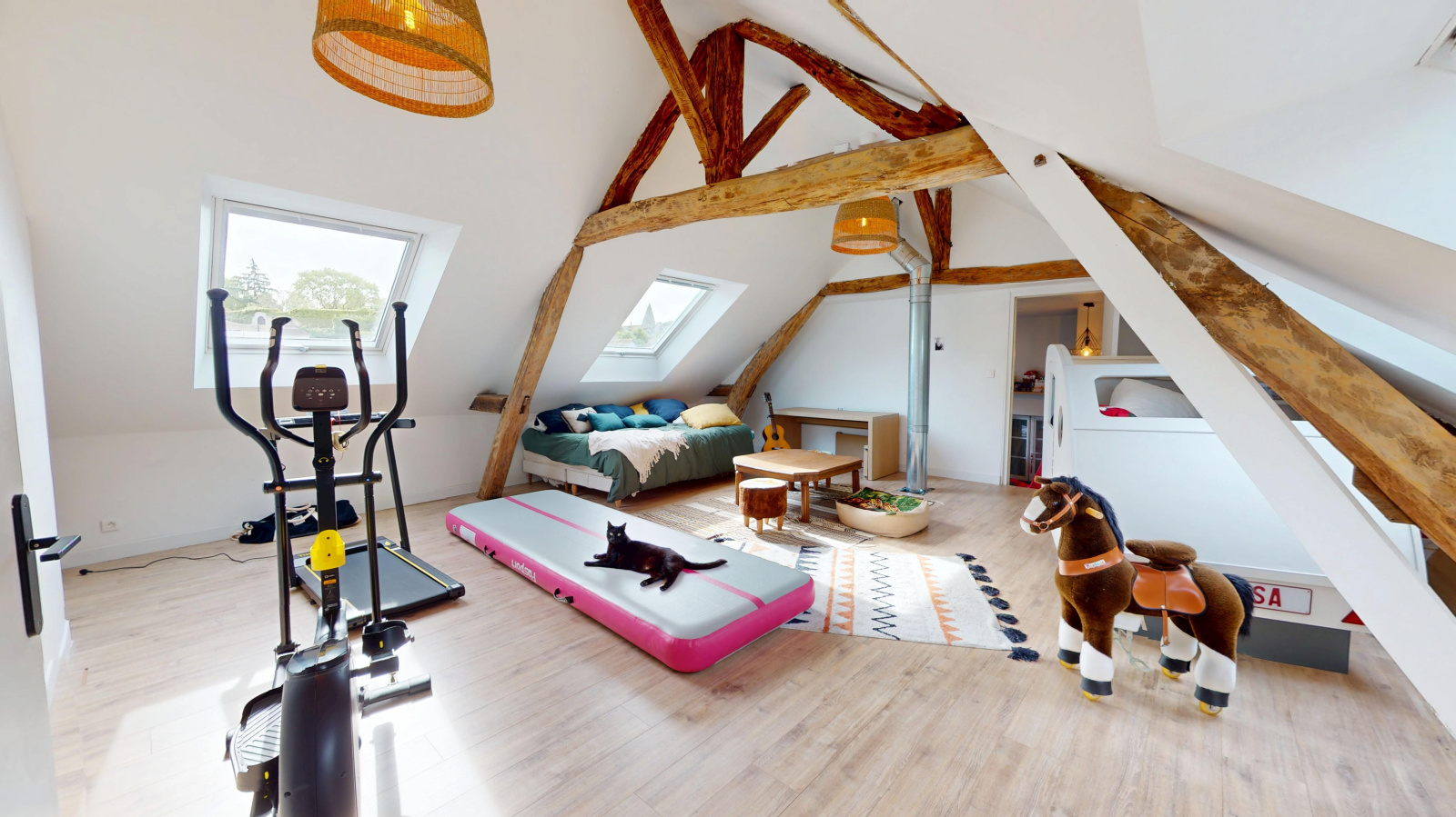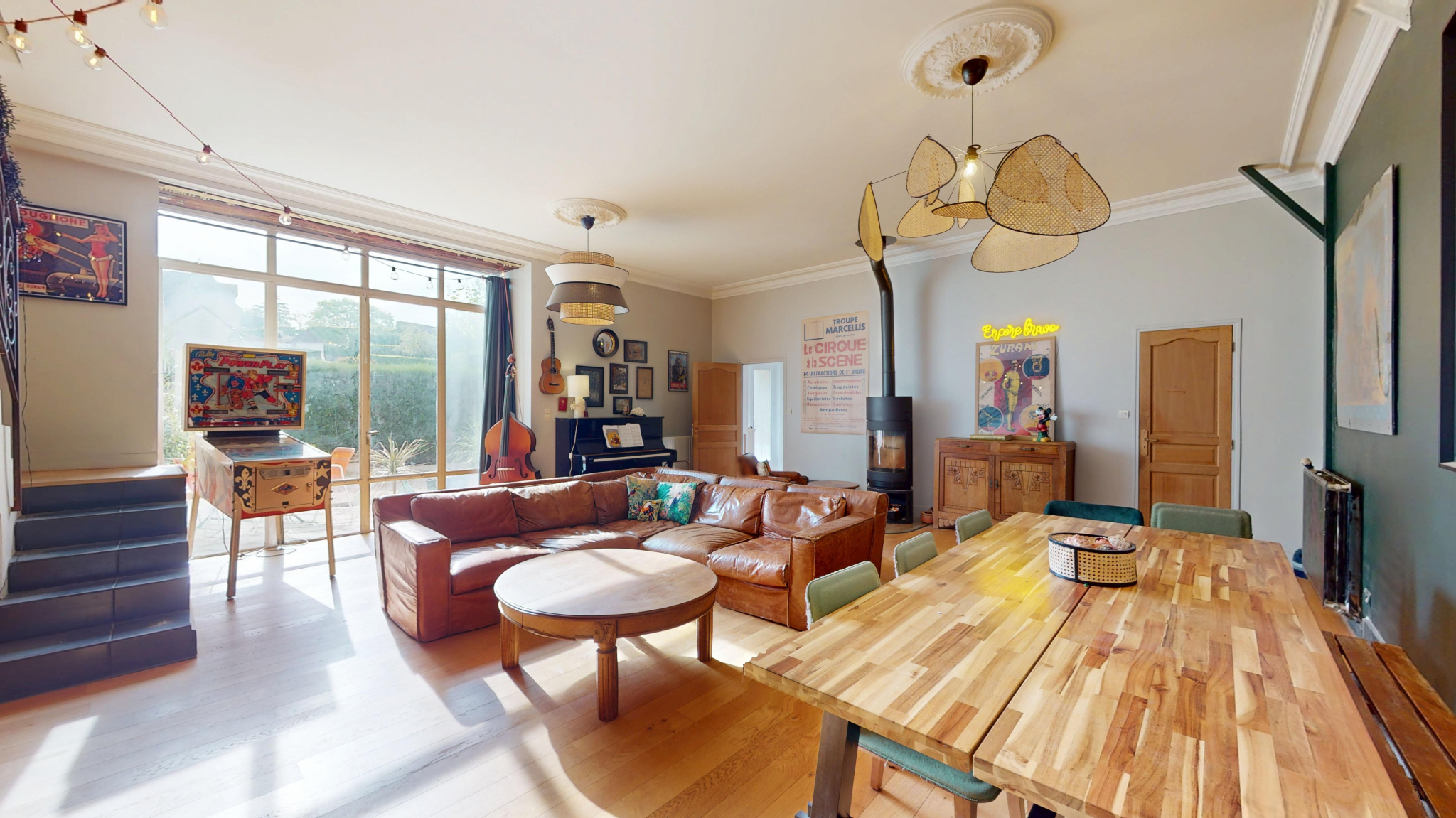 Les volumes sont généreux, à l’image du séjour d’environ 50 m², propice aux moments de convivialité, ainsi que de deux vastes pièces à l’étage de plus de 40 m² chacune, laissant entrevoir de nombreuses possibilités d’aménagement.