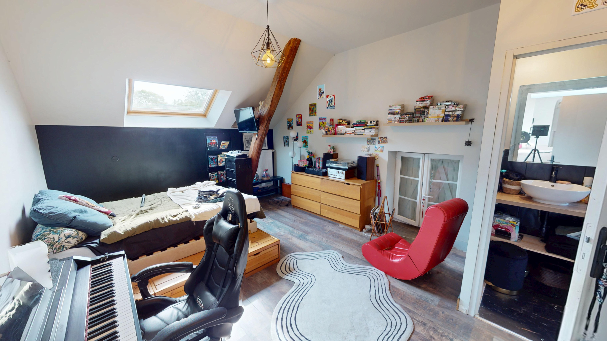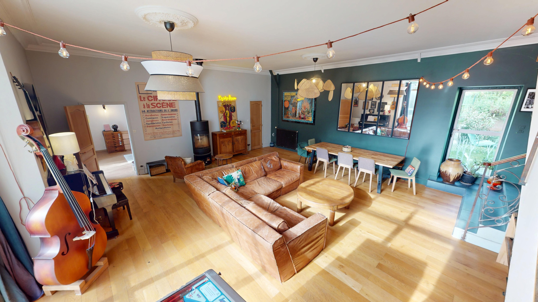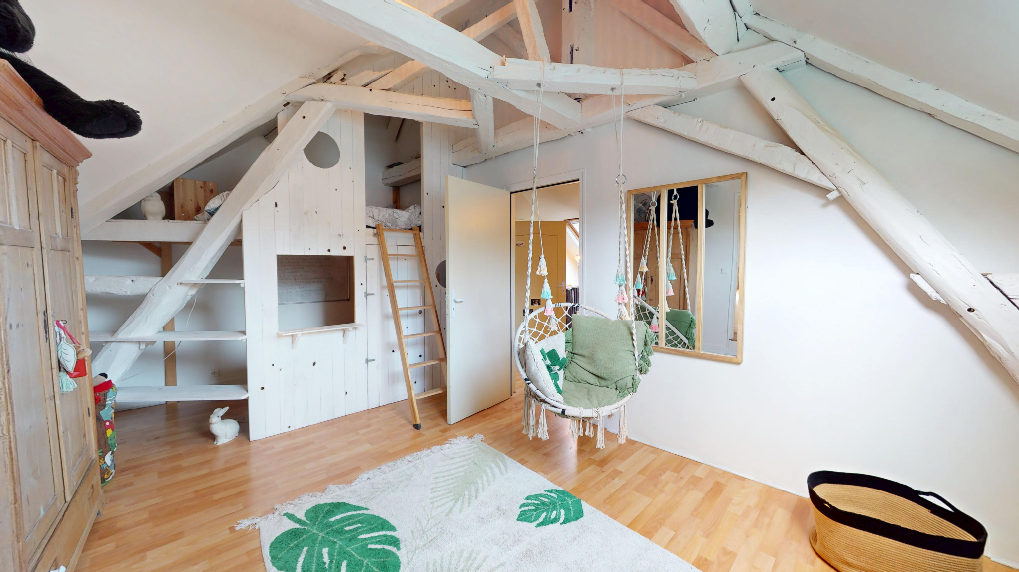 L’intérieur se compose de 10 pièces principales, avec une capacité allant jusqu’à 8 chambres selon les besoins. Aujourd’hui, certaines pièces ont été aménagées en espaces de vie complémentaires, tels qu’une salle de jeux/dortoir et une grande salle de musique, offrant une réelle flexibilité d’usage.