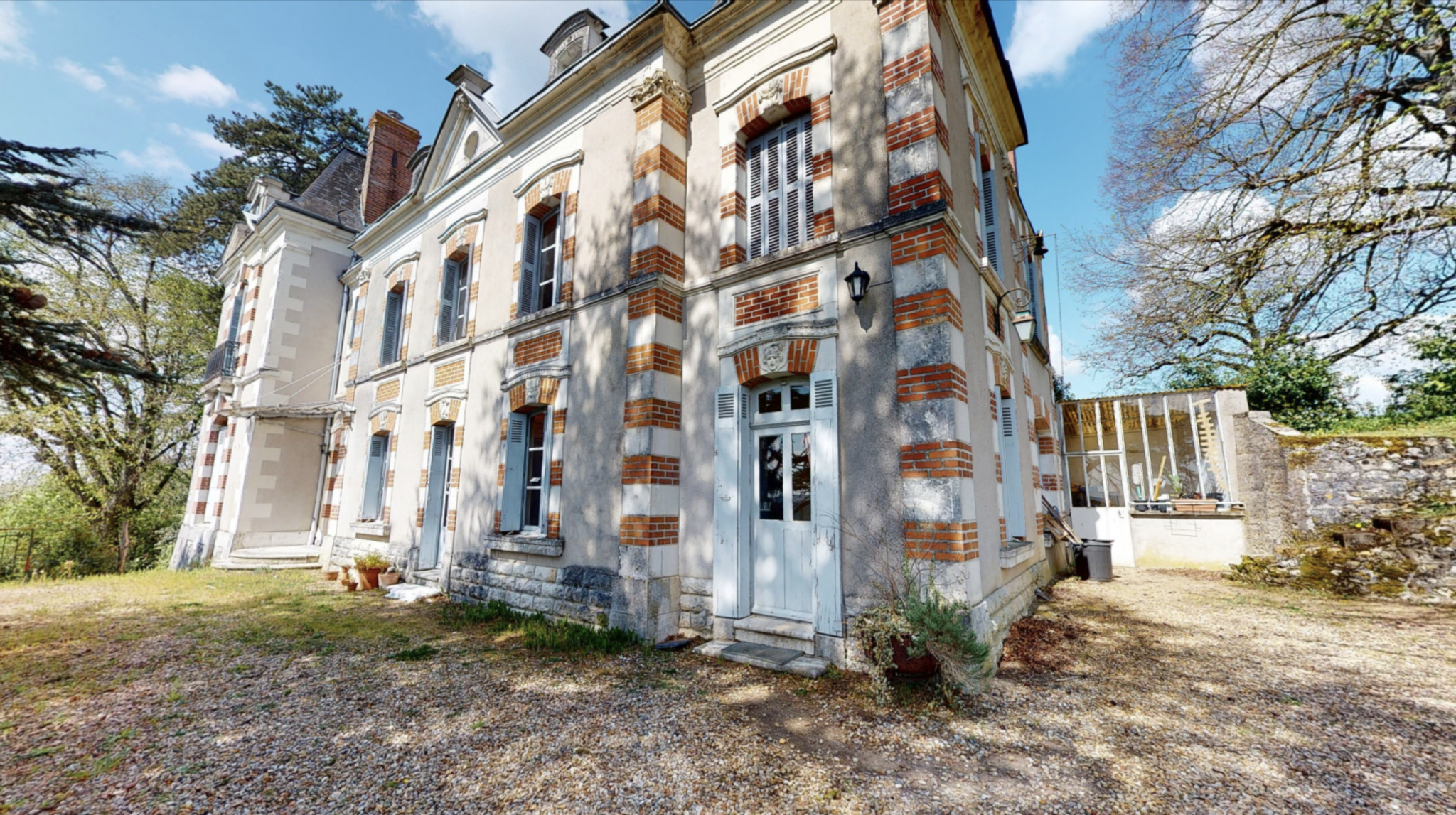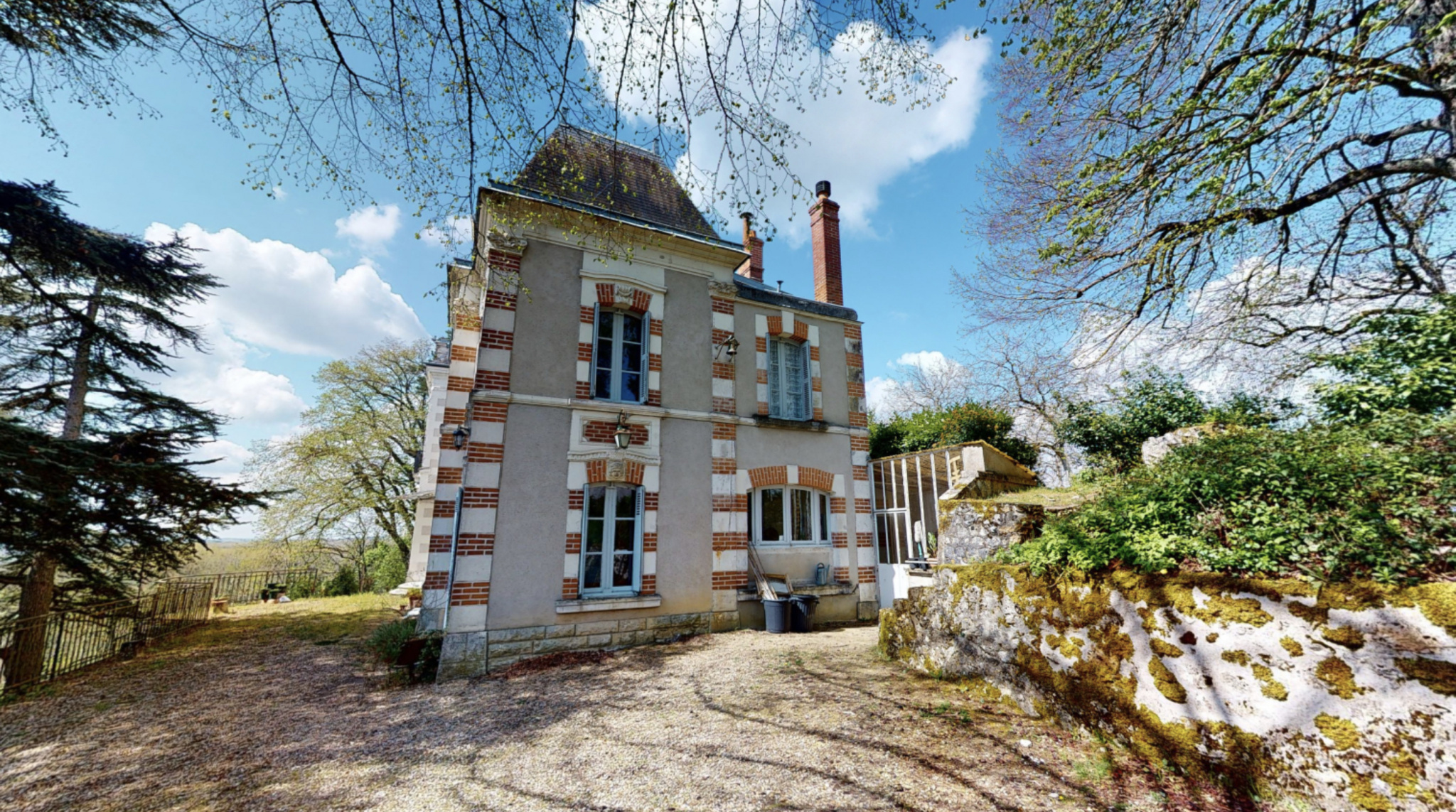 Élégante propriété du 19ème siècle avec vue panoramique sur la vallée de la Loire, entourée d un parc de 8 hectares.Pavillon de chasse en pierre de tuffeau du 18ème avec écurie et sellerie, garage , grande serre de bois.Deux habitations troglodytes à aménager, caves à vin.Importante noyeraie de plus de 400 arbres, vergers , prairies et bois.
