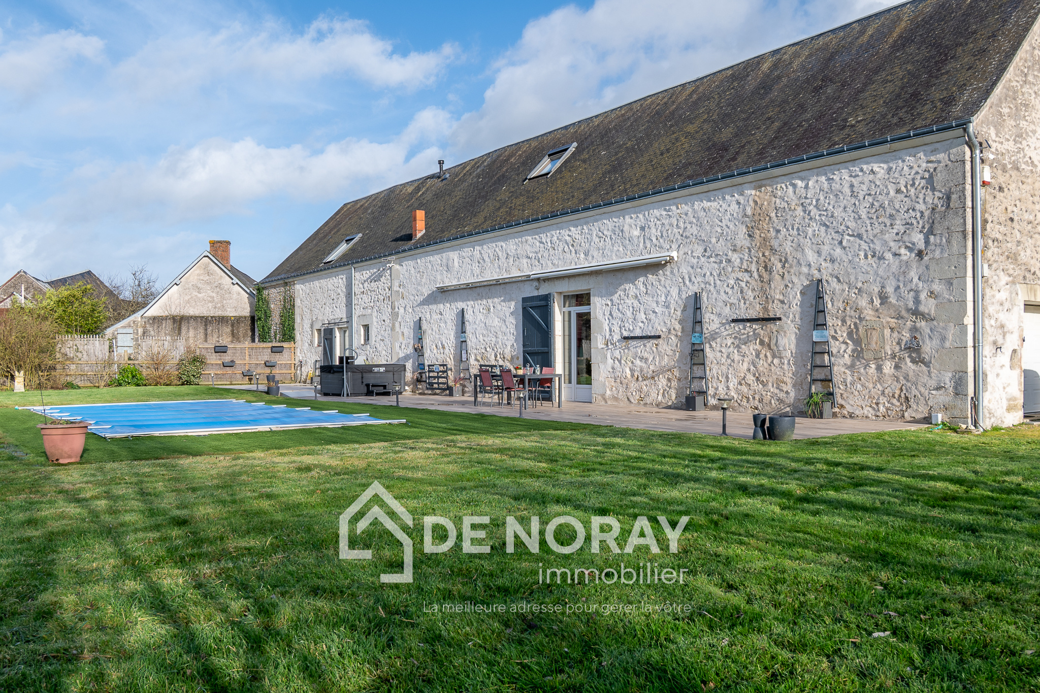 La maison principale d’environ 260 m², construite en 1850, séduit par ses volumes exceptionnels : vaste pièce de vie de 75 m² avec 8,60 m de hauteur sous plafond et grande baie vitrée apportant une luminosité remarquable, cuisine, suite parentale au rez-de-chaussée, espace détente, mezzanine aménagée et trois chambres à l’étage. Implantée sur un terrain clos de 5 000 m² avec piscine, elle dispose d’un chauffage au sol par pompe à chaleur.
